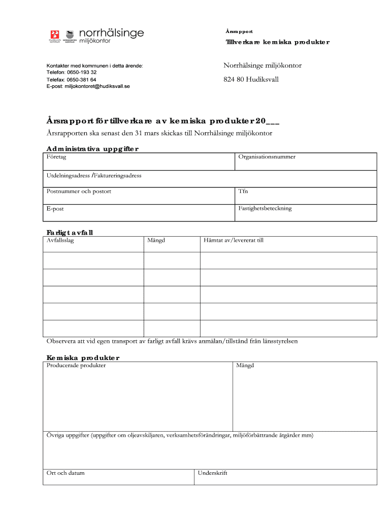 Any company or individual involved in the manufacturing of chemical products is required to file tillverkare av kemiska produkter.