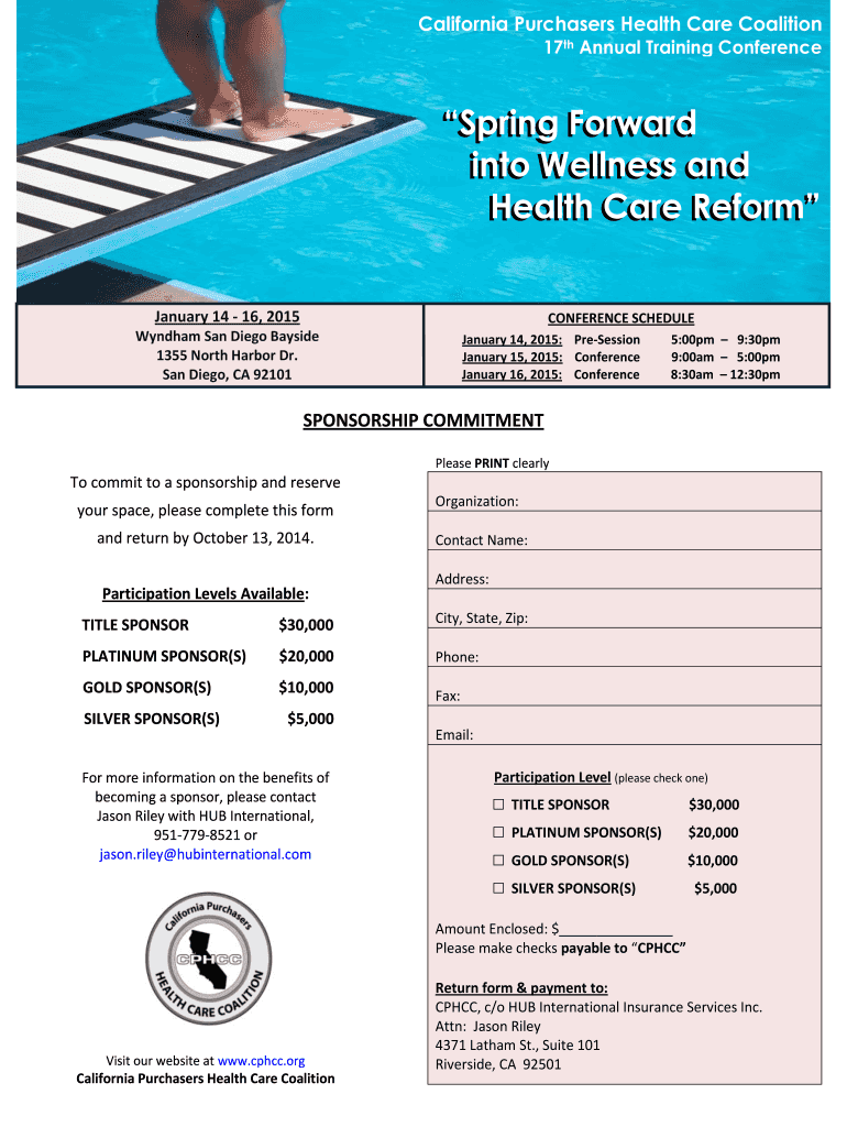 California Purchasers Health Care Coalition 17th Annual Training Conference Spring Forward into Wellness and Health Care Reform January 14 16, 2015 CONFERENCE SCHEDULE Wyndham San Diego Bayside 1355