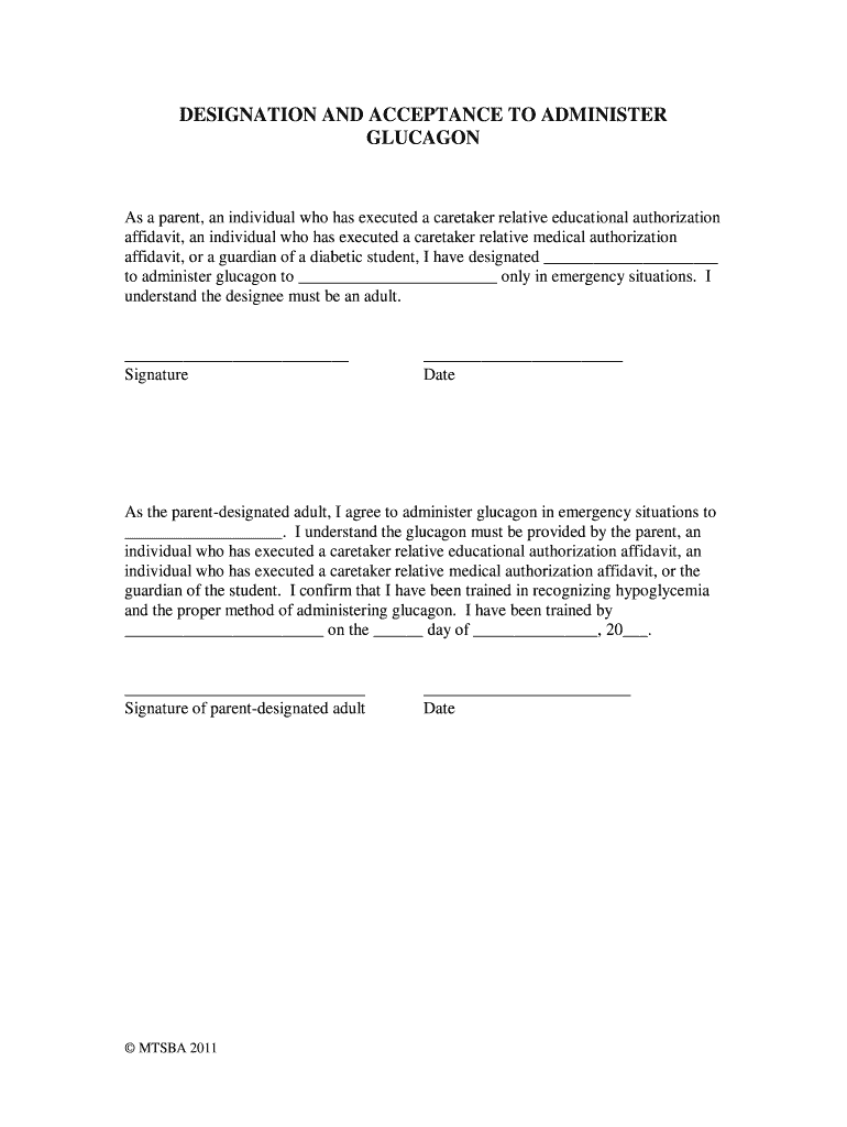 Get the free DESIGNATION AND ACCEPTANCE TO ADMINISTER GLUCAGON - lamedeer k12 mt