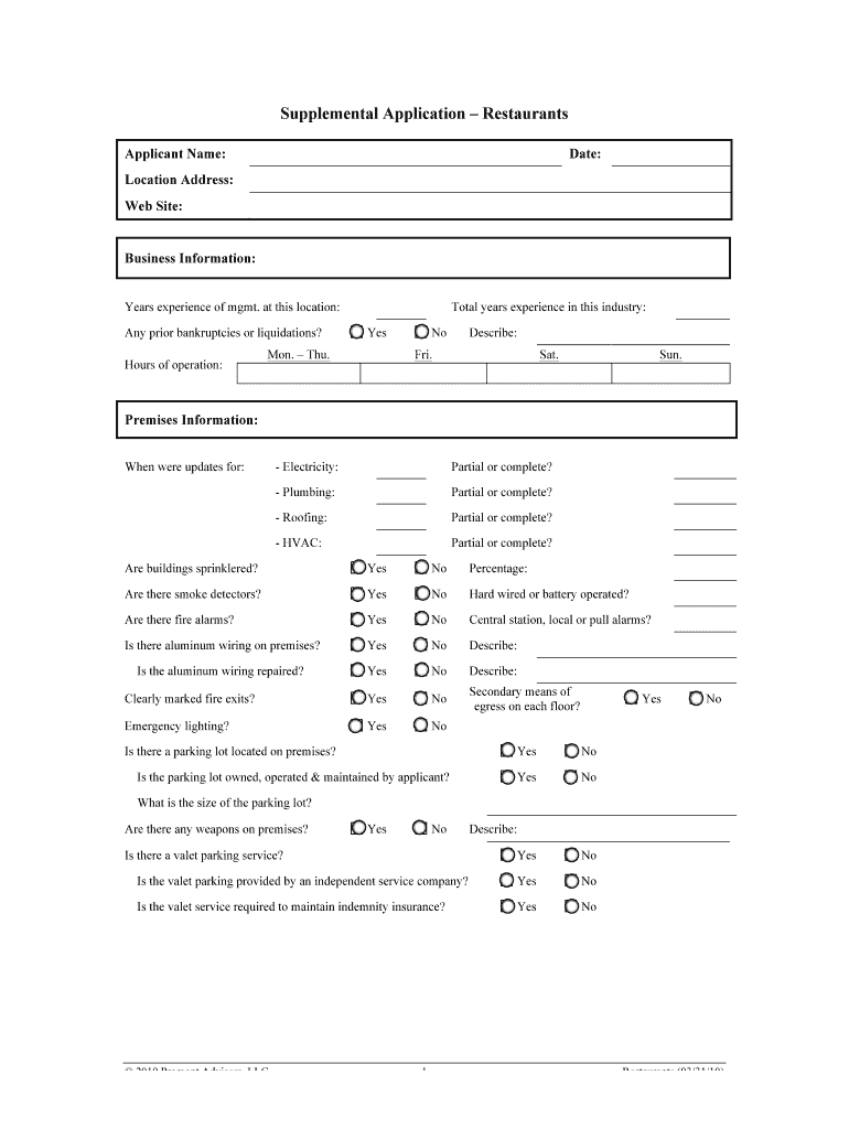 Specific industries within the restaurant sector may also have unique challenges and risks that necessitate specialized coverage, making this application a vital tool for their insurance needs.