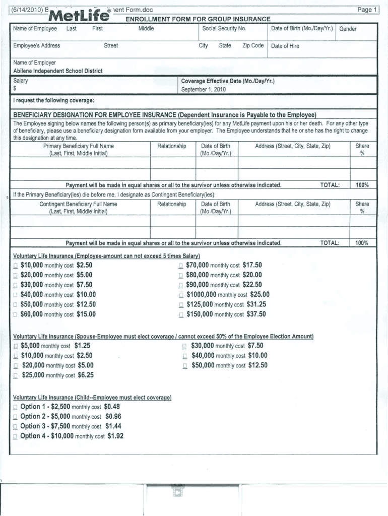 How to fill out the metlife employee insurance beneficiary