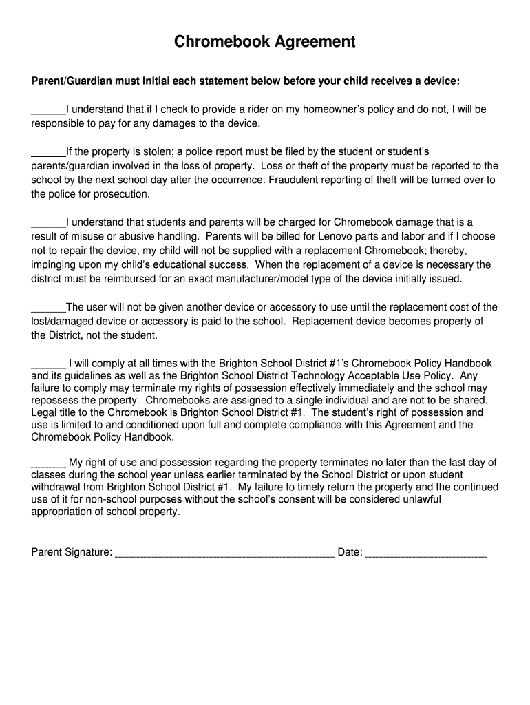 Students who attend schools or educational institutions that require the use of chromebooks may need to fill out the chromebook agreement - bbrightonb.