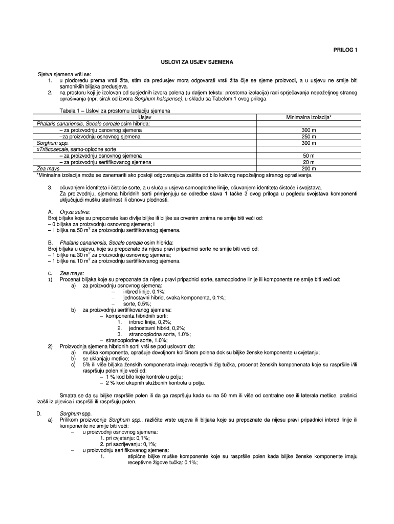 Get the free PRILOG 1 USLOVI ZA USJEV SJEMENA - podacinet