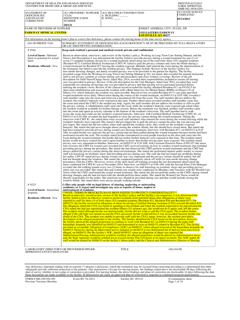 Get the free Nursing Home Survey Report Details for PARKWAY MEDICAL