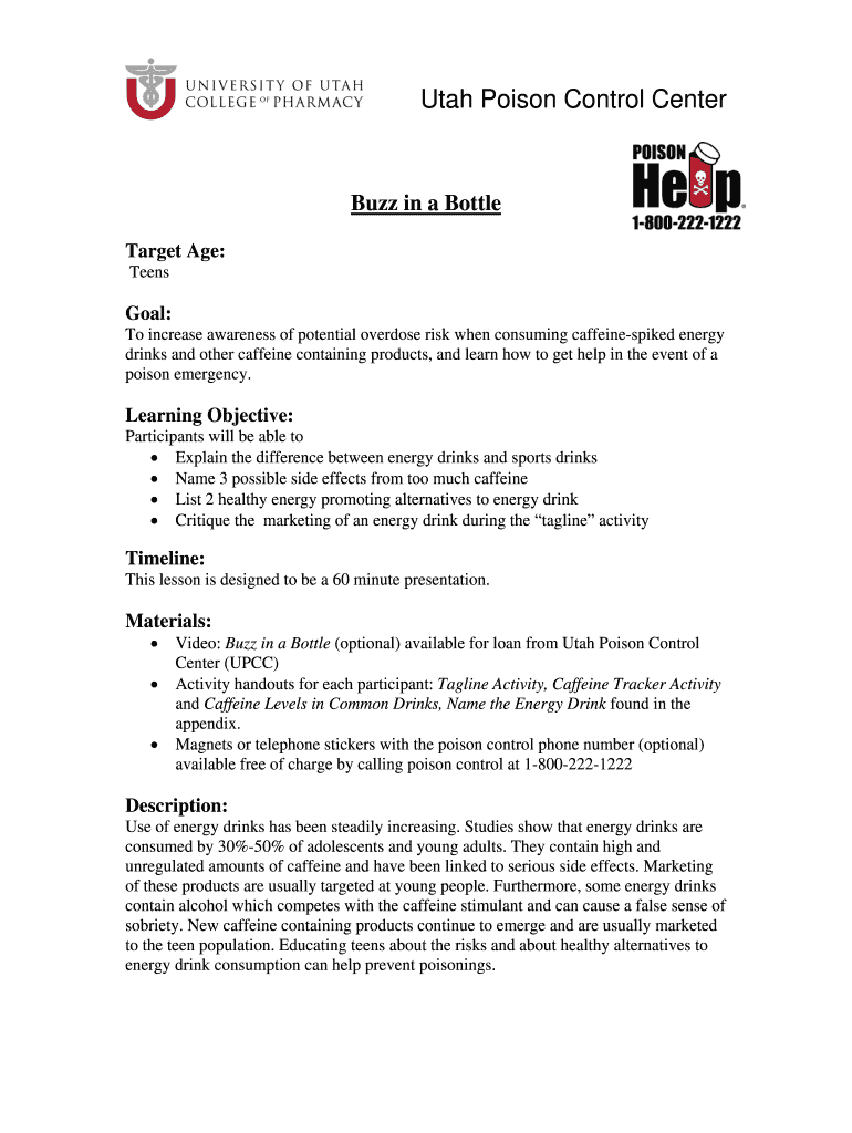 Get the free Name the Energy Drink - Utah Poison Control Center - poisoncontrol utah