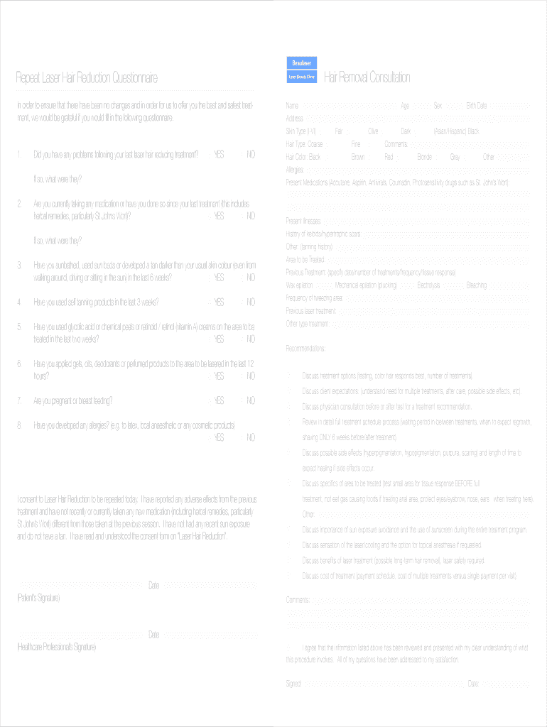 Elite Hair Removal ConsultationRepeat Laser Hair Reduction Questionnaire