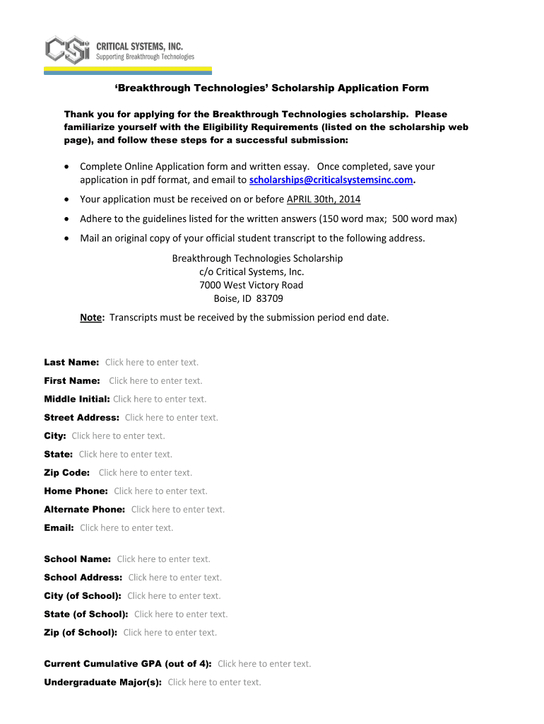 Edit your breakthrough technologies scholarship application form online