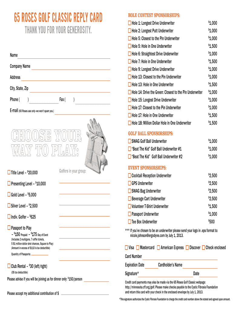 How to fill out 65 Roses Golf Classic reply card