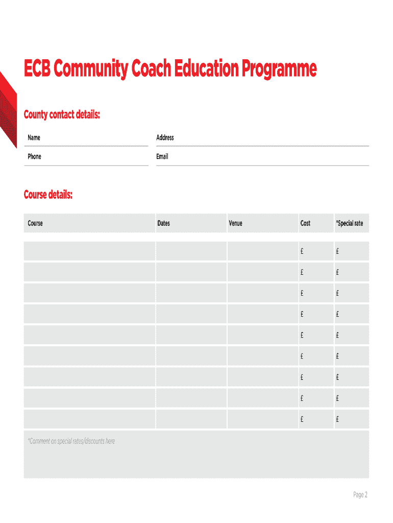 Wiltshire Cricket Board Coach Education Program & Application Form From Playground to Test Arena Play your part ECB.co.UK coaching Introduction Thank you for deciding to enrol on an ECB Coach Education