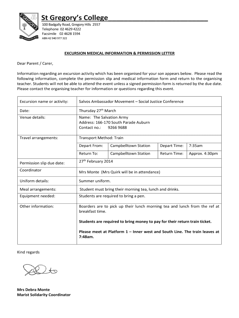 EXCURSION MEDICAL INFORMATION & PERMISSION LETTER