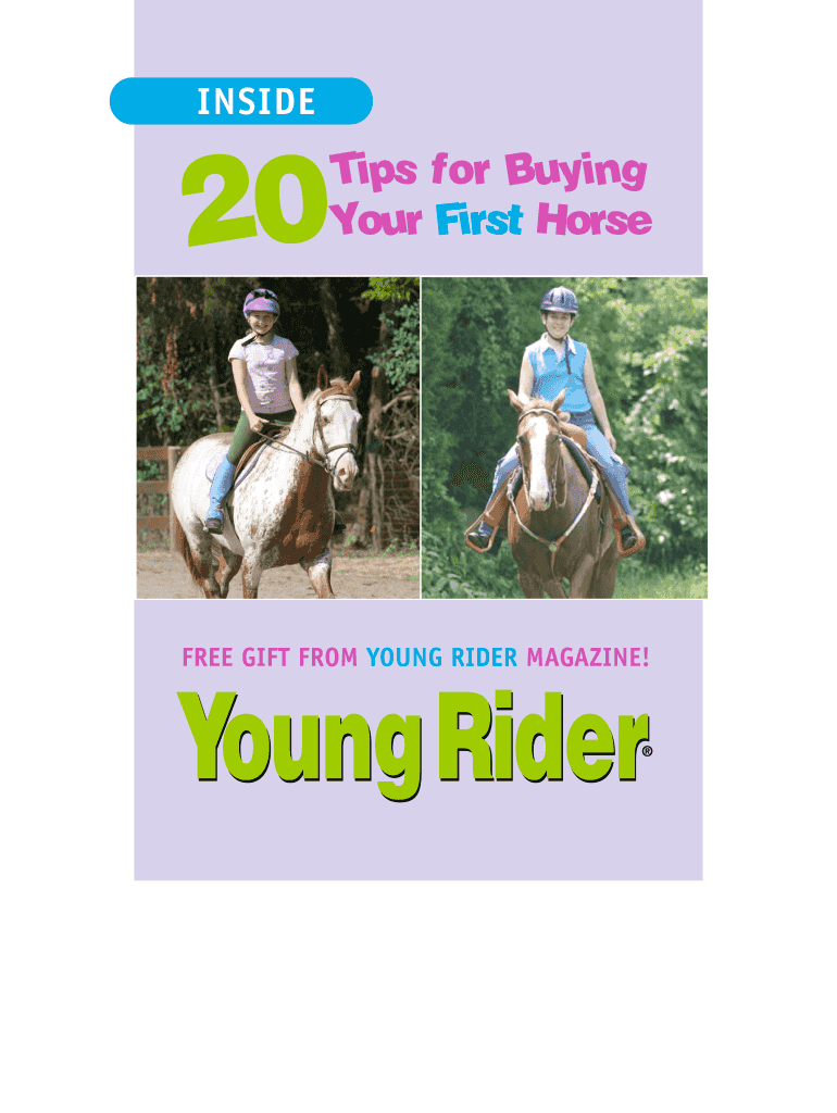 INSIDE20Tips for Buying Your First Horsemen GIFT FROM YOUNG RIDER MAGAZINE! YoungRider20Tips for Buying Your First Horseshoe to make sure you buy a suitable first horse or pony! Photos & text by Lesley