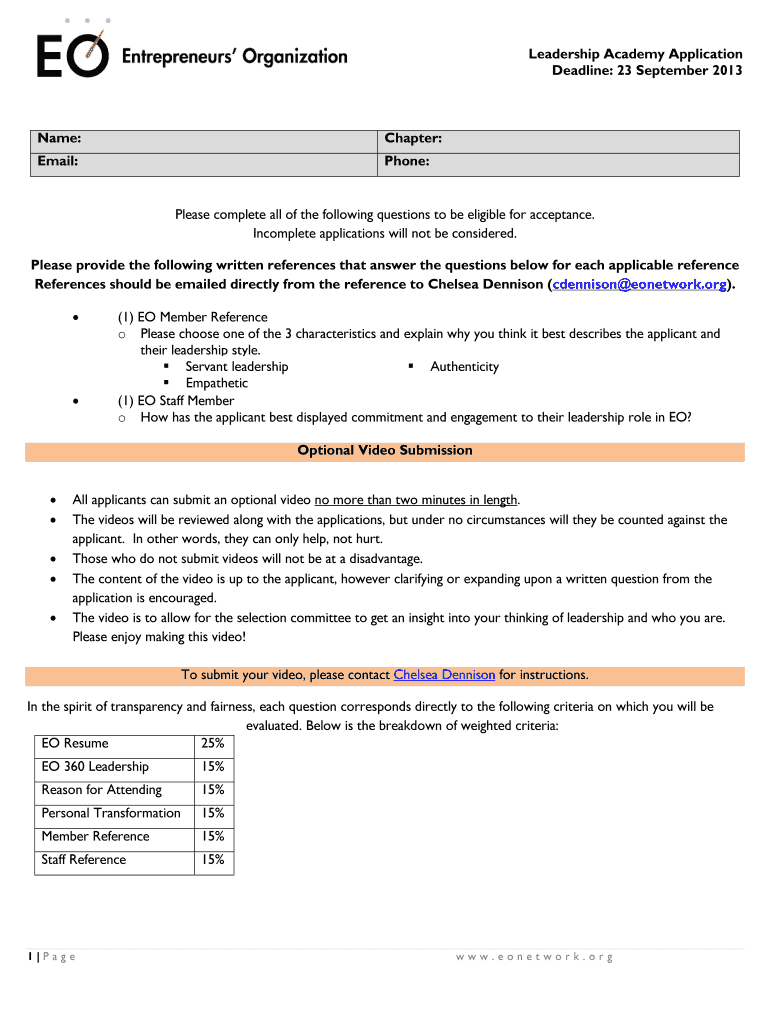 Leadership Academy Application Deadline: 23 September 2013 Name: Chapter: Email: Phone: Please complete all the following questions to be eligible for acceptance. Incomplete applications will not