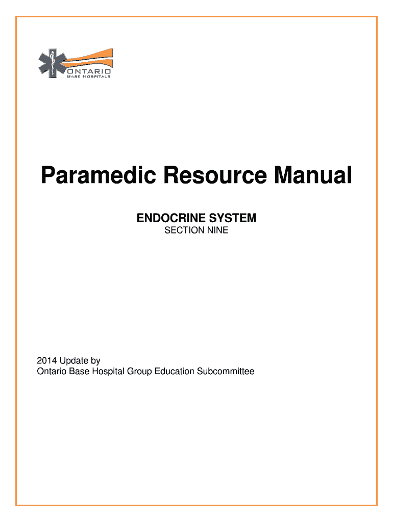 Paramedic Resource Manual ENDOCRINE SYSTEM SECTION NINE 2014 Update by Ontario Base Hospital Group Education Subcommittee OBJECTIVES: ENDOCRINE SYSTEM The objectives indicate what you should know,