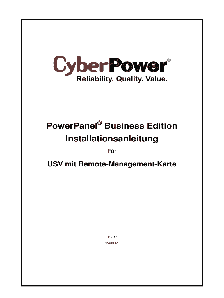 Anyone who is responsible for installing the PowerPanel Business Edition software should refer to the installationsanleitung guide.