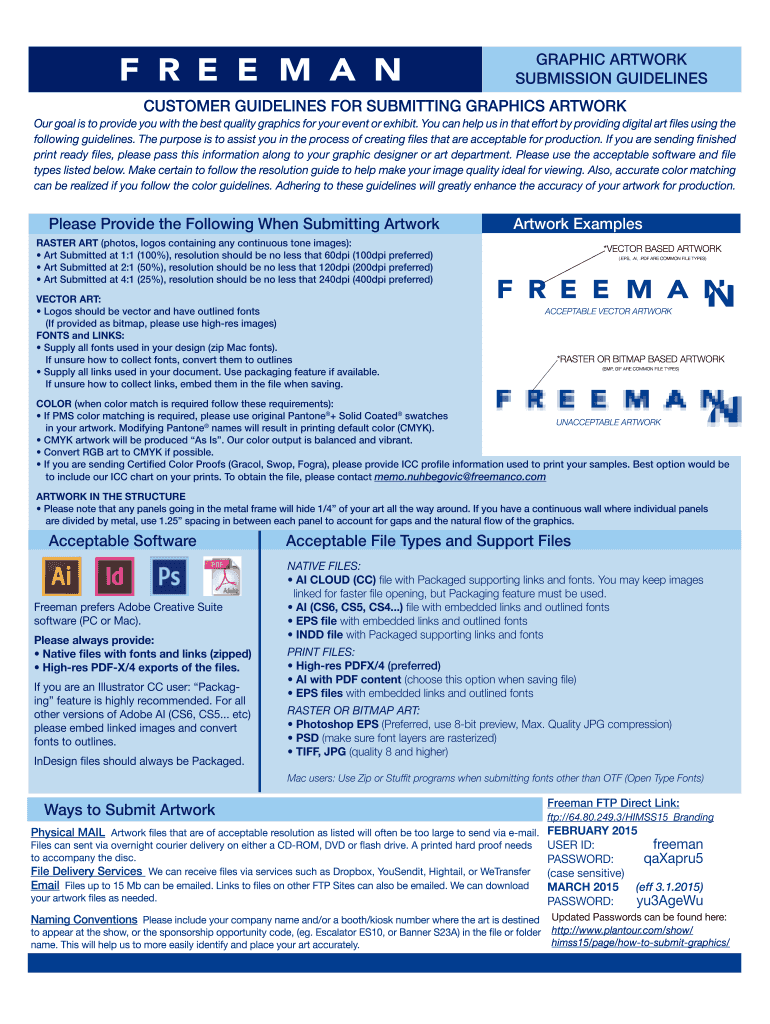 GRAPHIC ARTWORK SUBMISSION GUIDELINES CUSTOMER GUIDELINES FOR SUBMITTING GRAPHICS ARTWORK Our goal is to provide you with the best quality graphics for your event or exhibit. You can help us in that