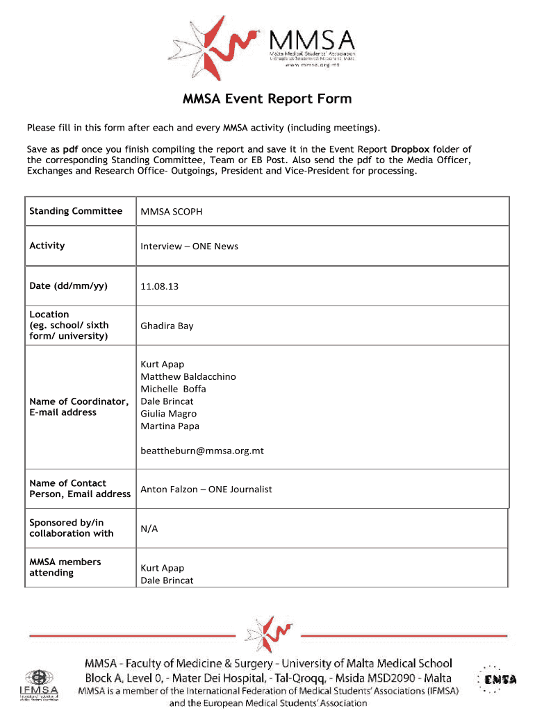 MESA Event Report Form Please fill in this form after each and every MESA activity (including meetings×. Save as PDF once you finish compiling the report and save it in the Event Report Dropbox folder