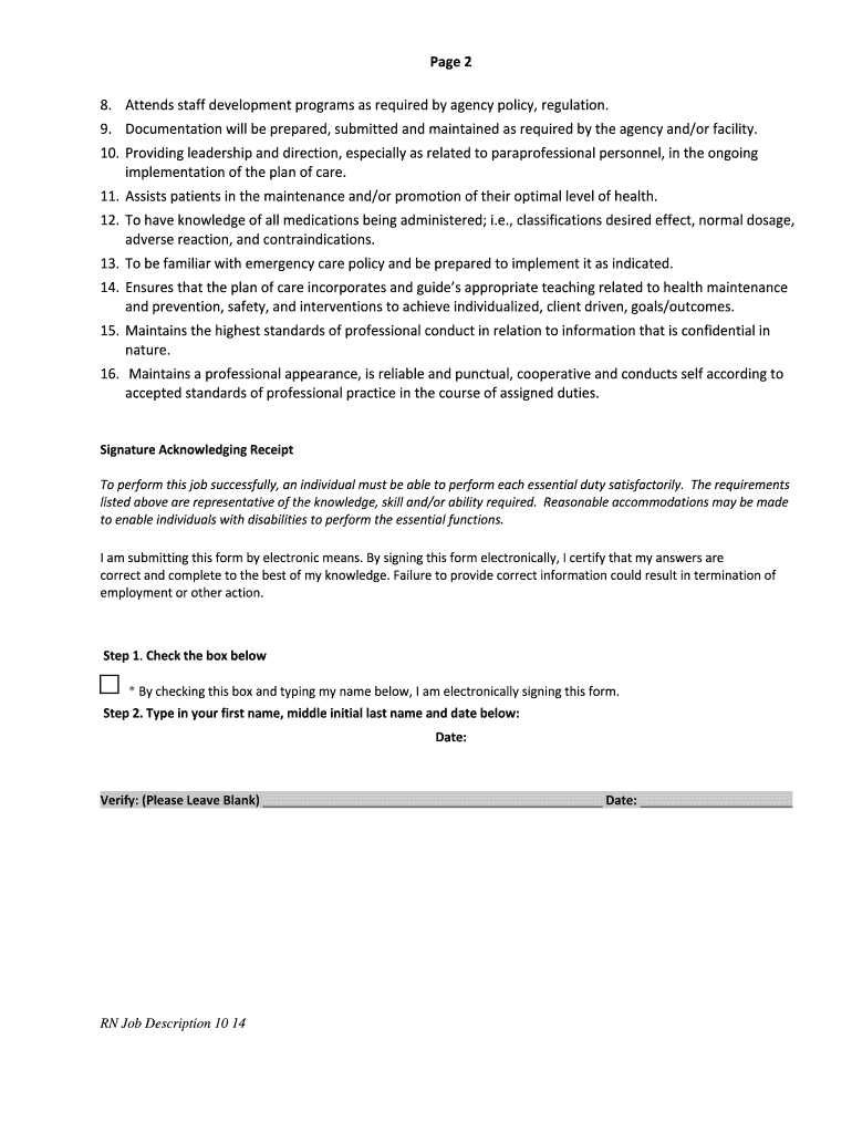 To fill out a registered professional nurse form, the nurse must provide their personal information, educational background, work experience, and any continuing education or certifications.