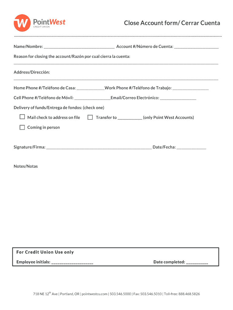 Get the free Close Account form Cerrar Cuenta - Point West Credit Union