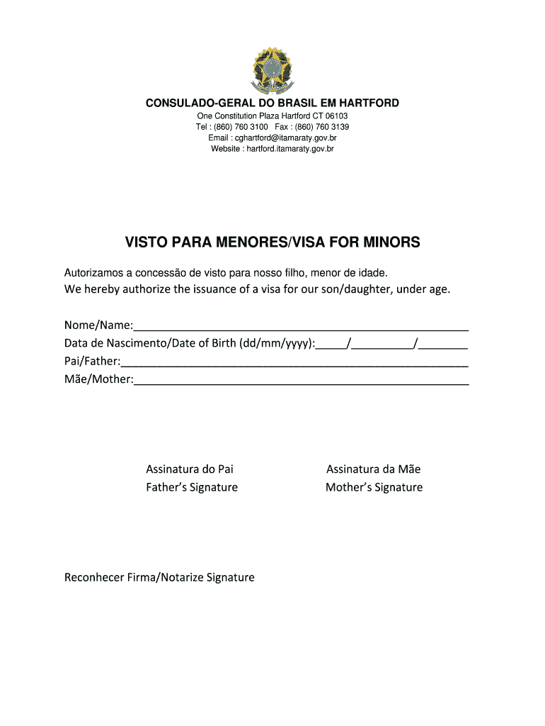 This form is intended for parents or legal guardians of minors who need to authorize the issuance of a visa for their child. Both parents must sign the form.