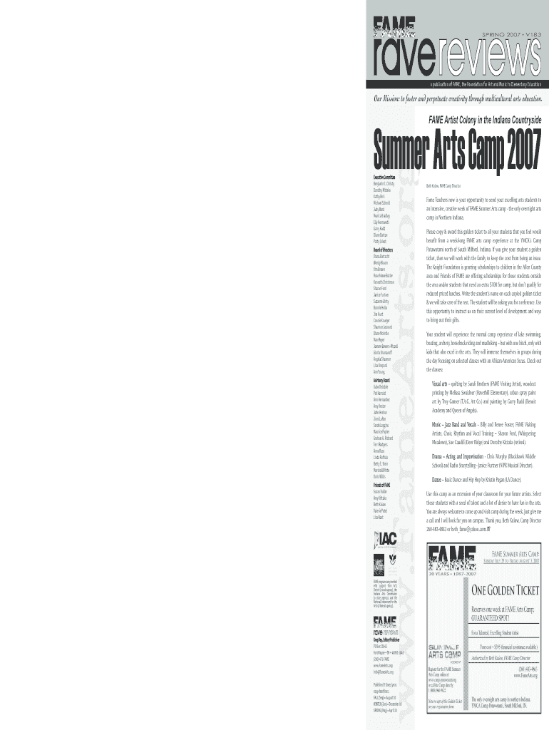 PAID www.FameArts.org The Foundation for Art and Music in Elementary Education PO Box 11843 Fort Wayne IN 468611843 ×260) 471FAME www.FameArts.org Contact Camp Director Beth Low for more info. 29