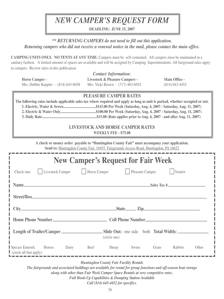 Get the free NEW CAMPERS REQUEST FORM - Huntingdon County Fair