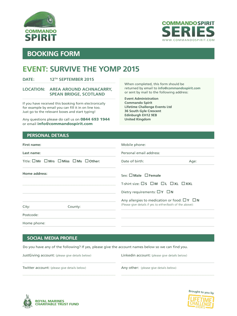 BOOKING FORM Event: SURVIVE THE COMP 2015 DATE: 12TH September 2015 LOCATION: AREA AROUND ACHNACARRY, SPEAK BRIDGE, SCOTLAND If you have received this booking form electronically for example by email
