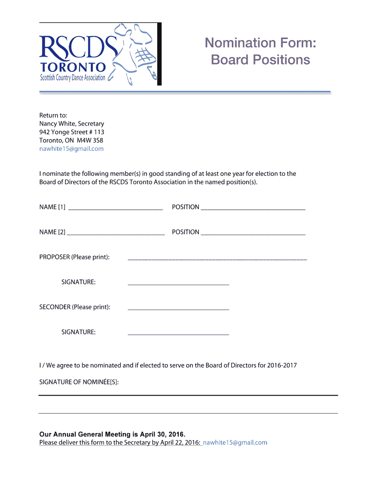 Get the free Nomination Form Board Positions - dancescottishca