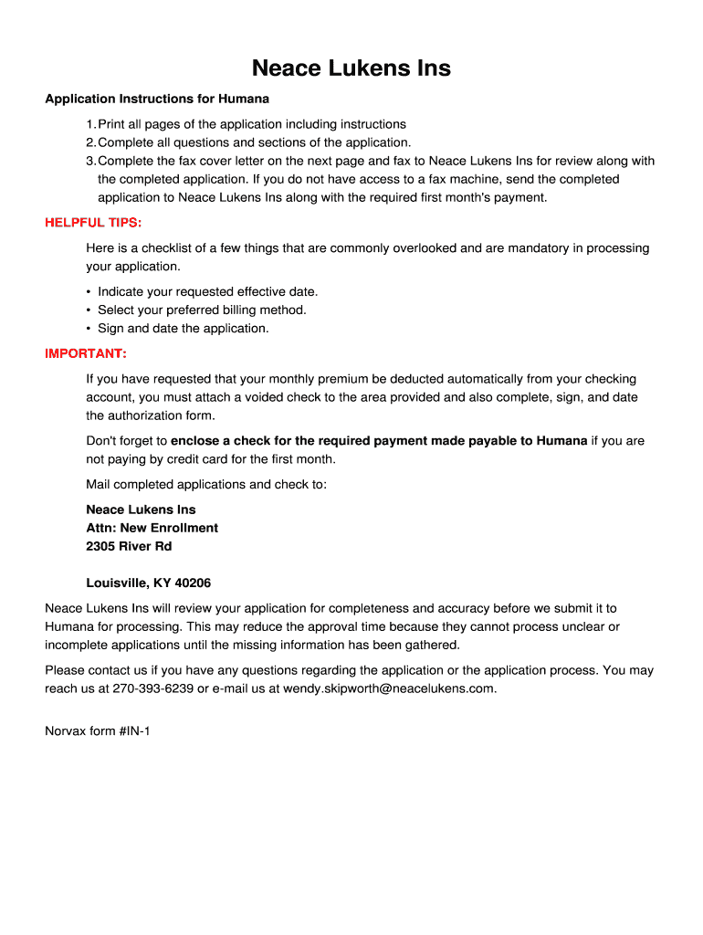 How to fill out neace lukens ins