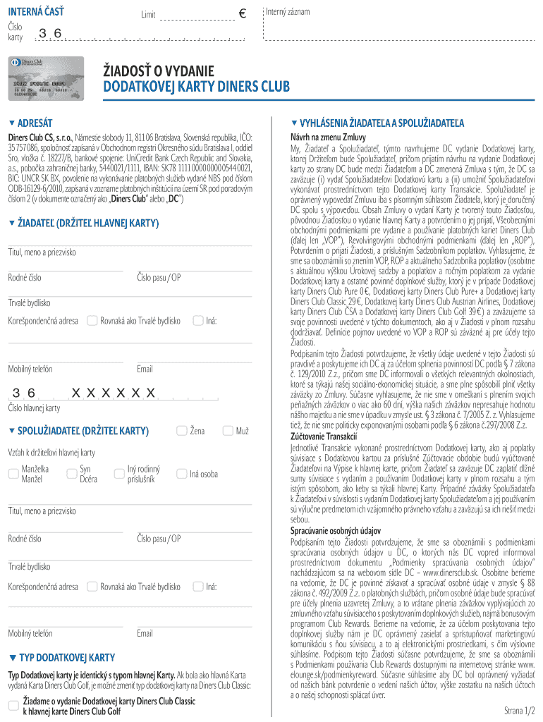 INTERN AS SLO party Limit Intern Nam 3 6 IATOS VYVANSE DODATKOVEJ PARTY DINERS CLUB ARREST YESENIA GALATEA ASPOLUIADATEA Diners Club CS, s.r.o., Nestle bloody 11, 81106 Bratislava, Slovens Republican,