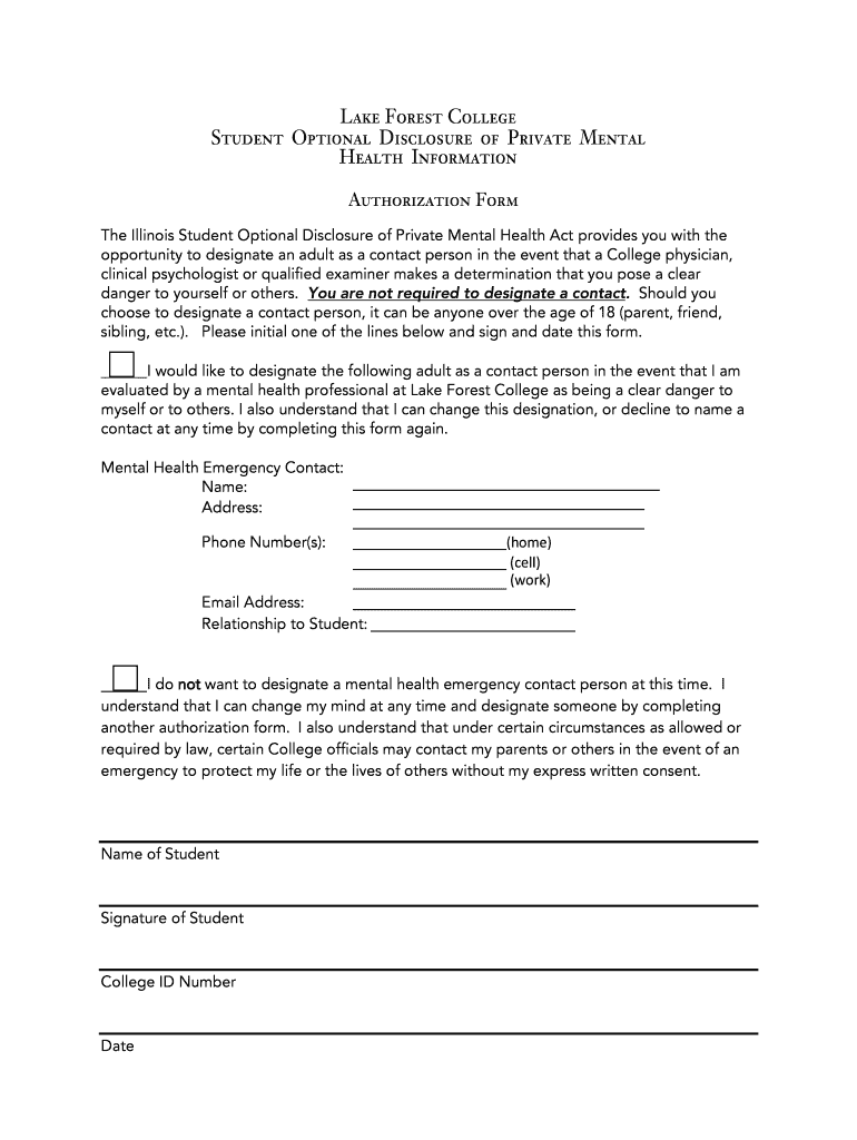 Fall 2016 Dear New Lake Forest College Student: Congratulations on your acceptance to Lake Forest College. The Health & Wellness Center provides a range of health and wellness services to all Lake