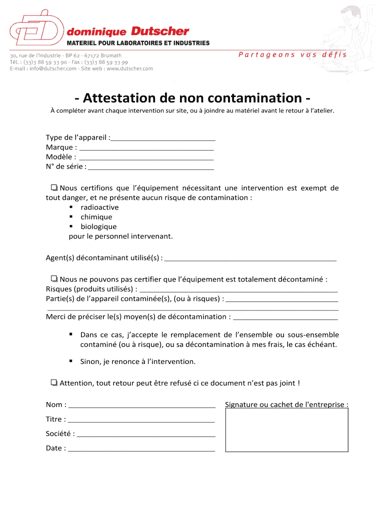 Obtenir le gratuit Attestation de non contamination - ddbiolabcom