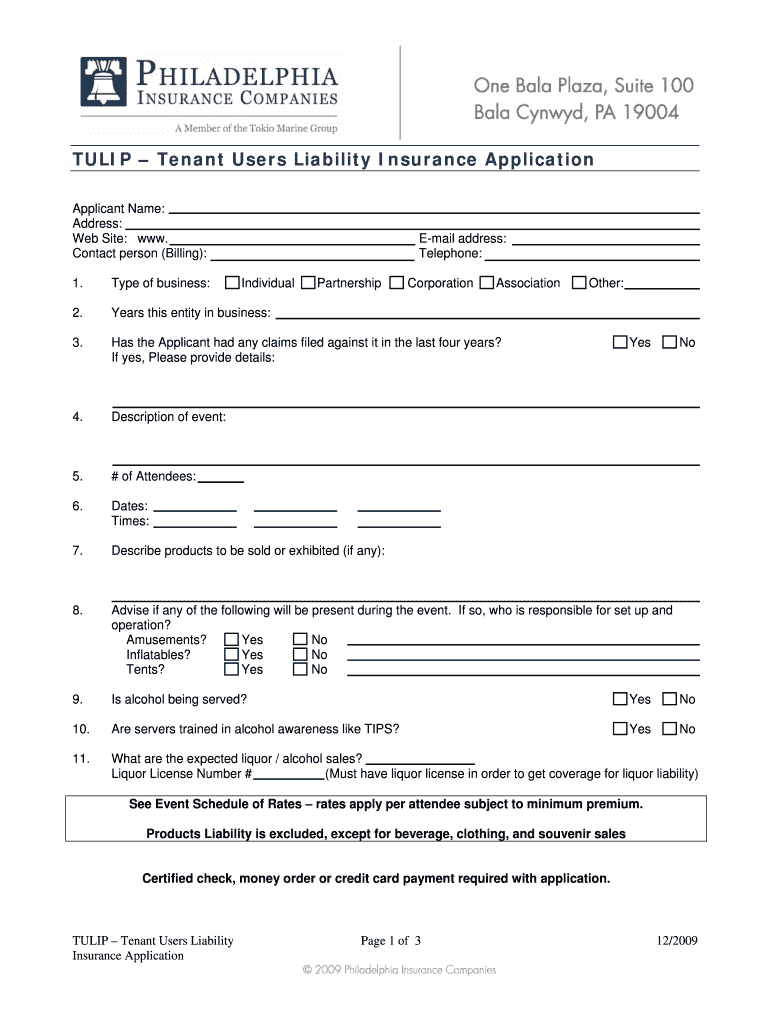 Get the free TULIP Tenant Users Liability Insurance Application