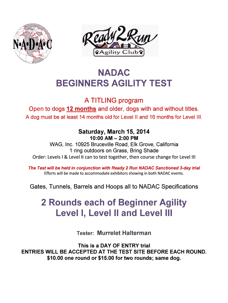 Get the free NADAC BEGINNERS AGILITY TEST 2 Rounds each of Beginner ...