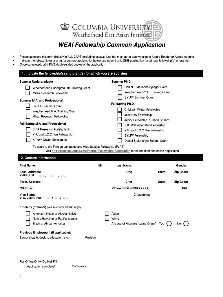 Get the free BWEAIb Fellowship Common Application - weai columbia