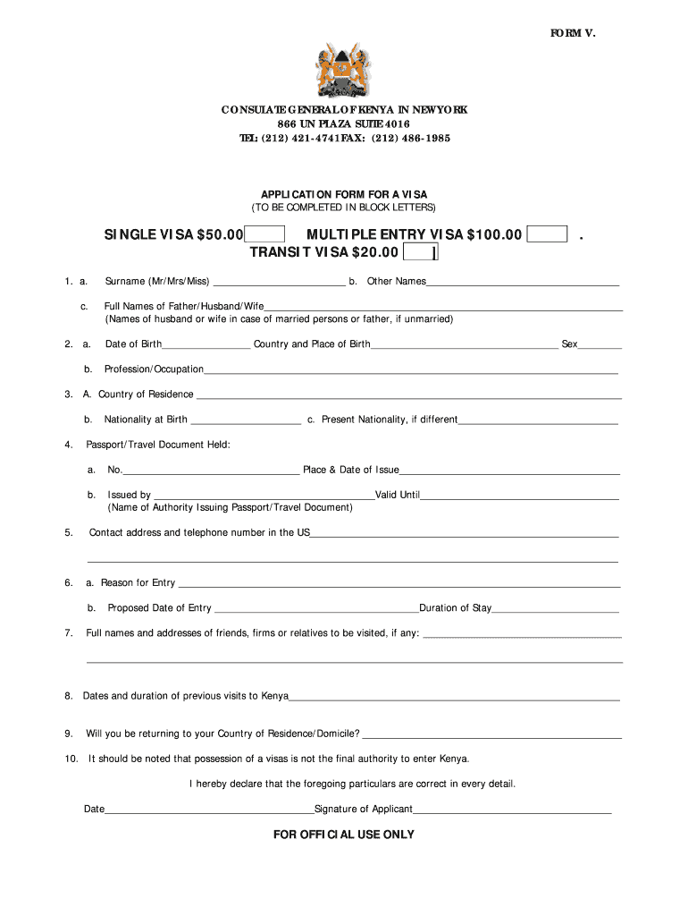 Get the free Kenya Visa Application Form