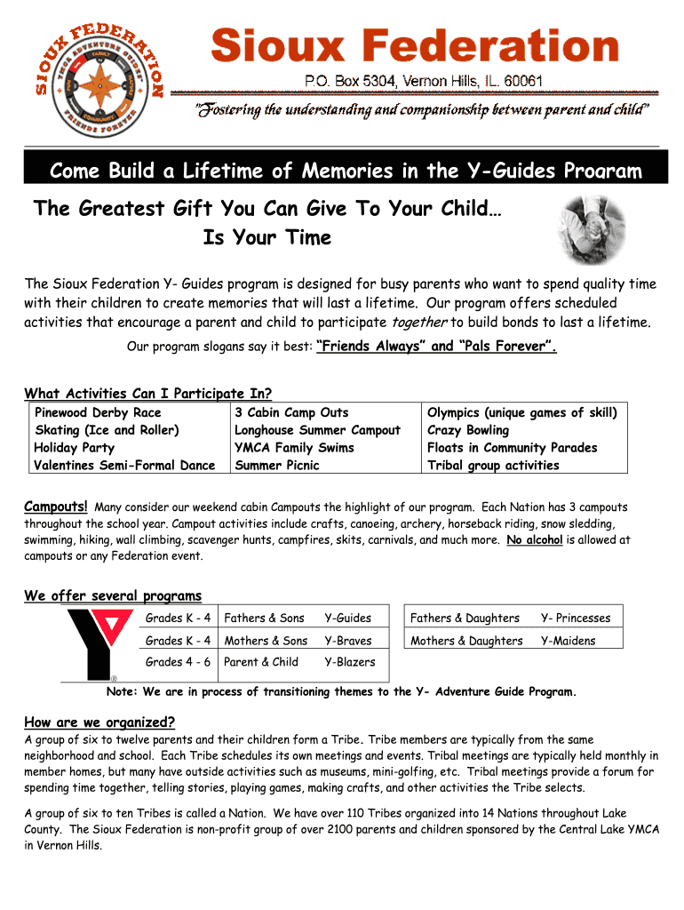 Come Build a Lifetime of Memories in the Guides Program The Greatest Gift You Can Give To Your Child Is Your Time The Sioux Federation Y Guides program is designed for busy parents who want to spend