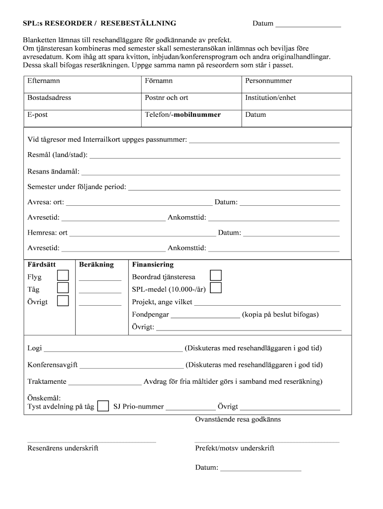 Datum SPL:s RECORDER / RESEBESTLLNING Blanket ten lines till resehandlggare for godknnande av prefect. Om tjnsteresan combiners med semester small semesteranskan islands och devils are avresedatum.