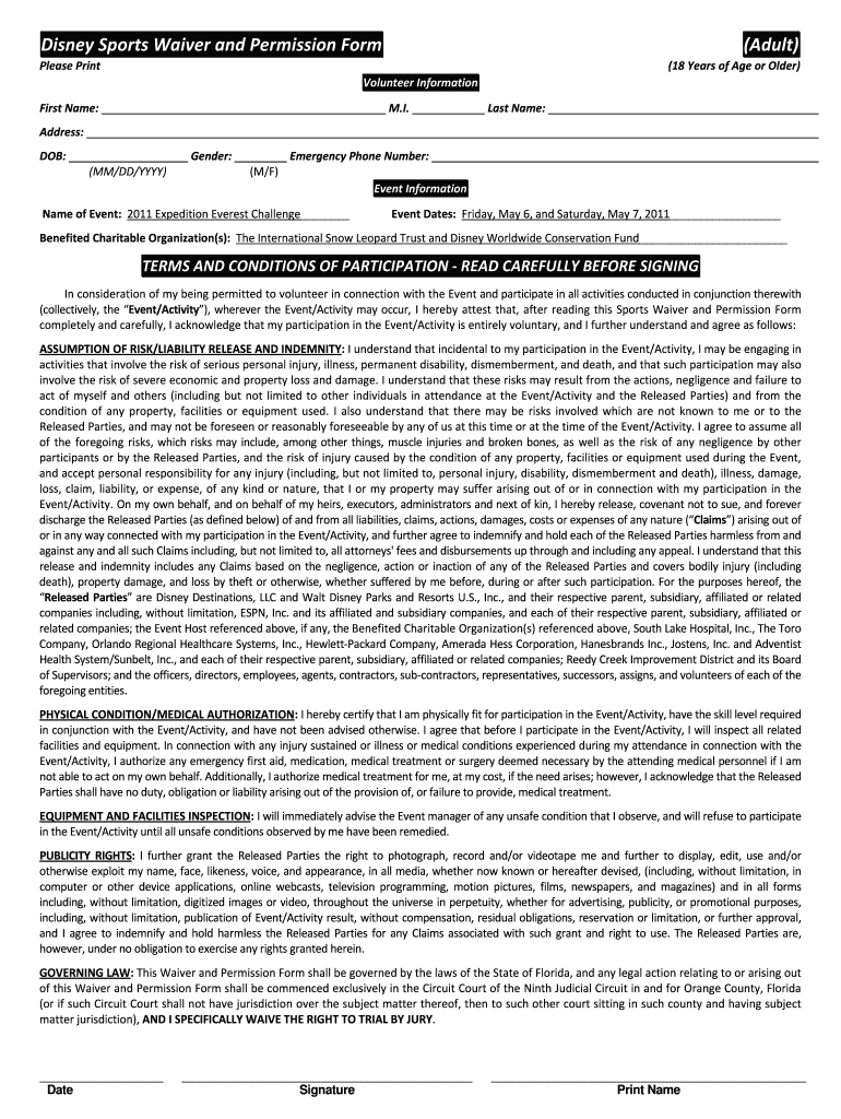 DisneySportsWaiverandPermissionForm Greasepaint (Adult) (18YearsofAgeorOlder) VolunteerInformation Filename: M.I. Hostname: Address: Gender: DOB: (MM×DD/YYY) EmergencyPhoneNumber: (M×F) EventInformation