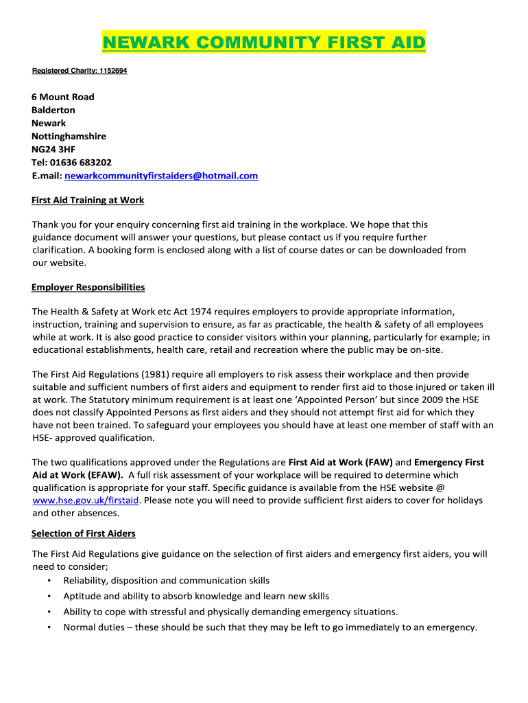 Fill out your newark community first aid online with pdfFiller!