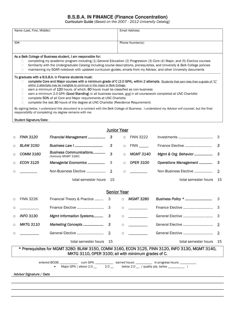 Get the free IN FINANCE (Finance Concentration) - belkcollege uncc