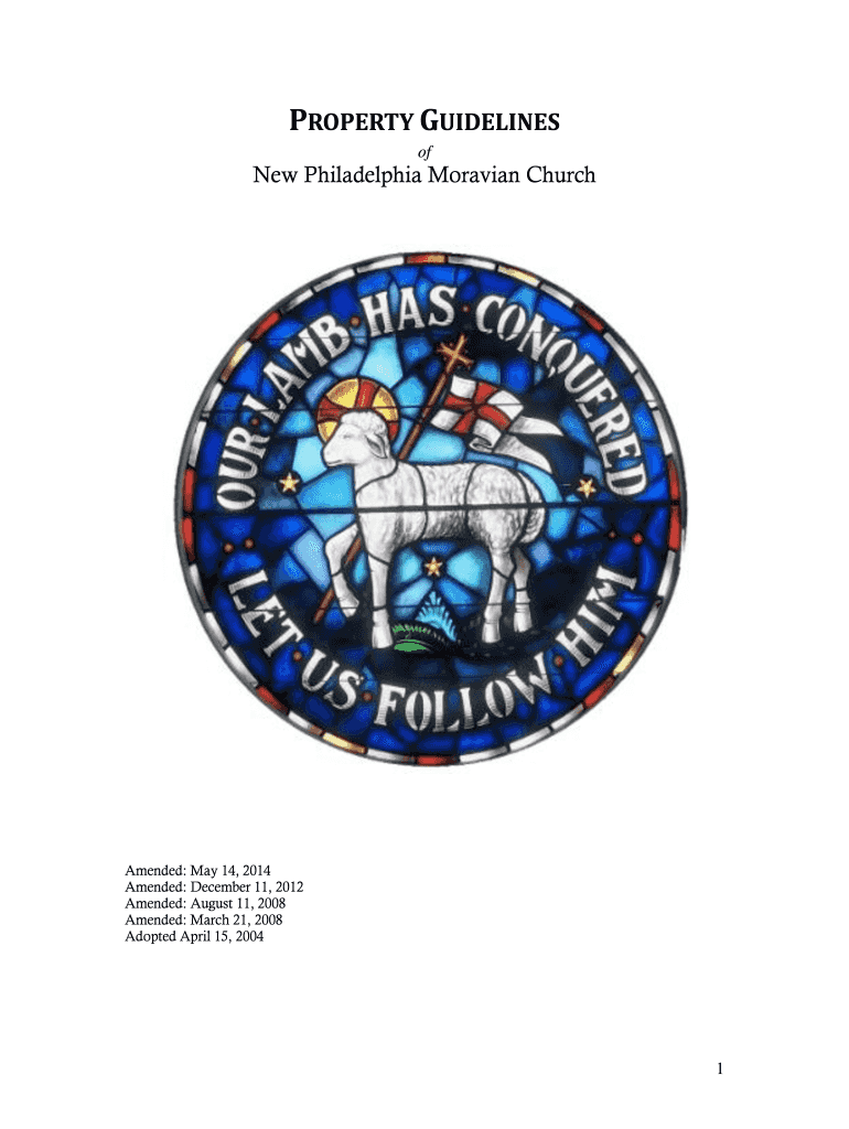 PROPERTY GUIDELINES of New Philadelphia Moravian Church Amended: May 14, 2014, Amended: December 11, 2012, Amended: August 11, 2008, Amended: March 21, 2008, Adopted April 15, 2004 1 Table of Contents