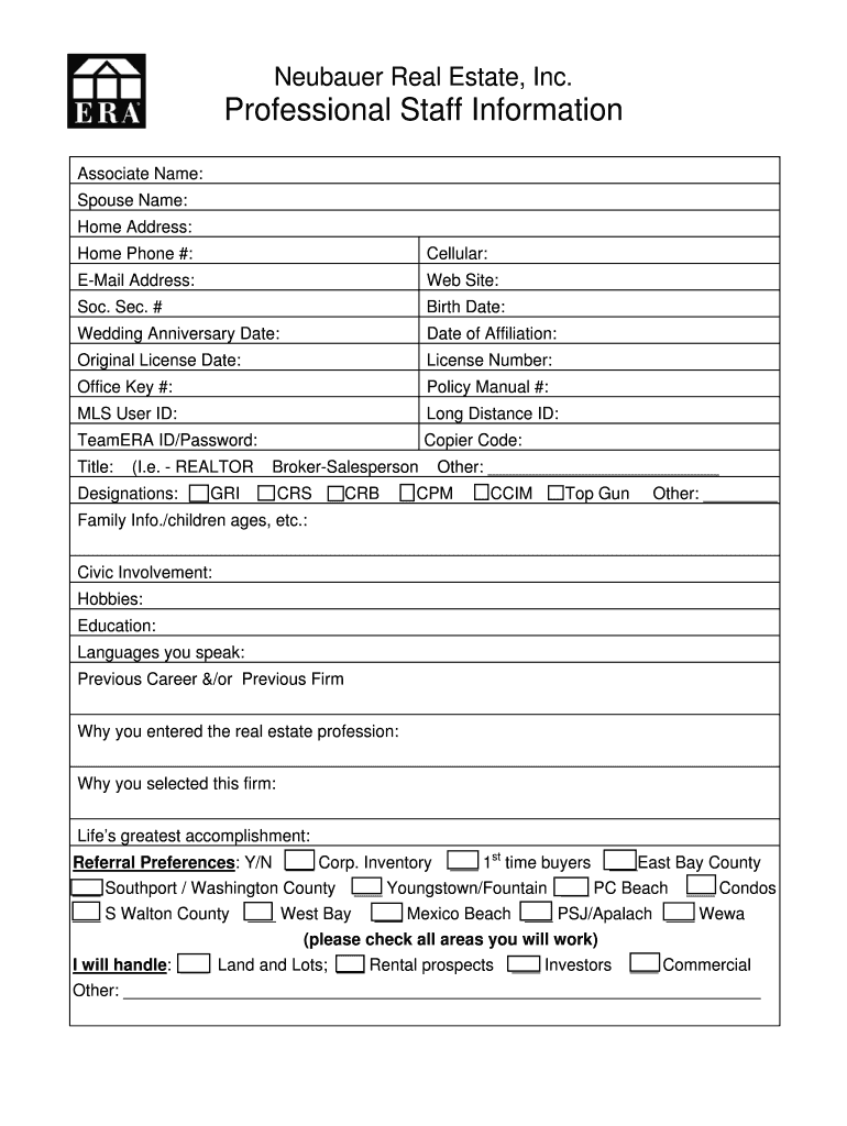 Get the free Neubauer Real Estate Inc Professional Staff Information