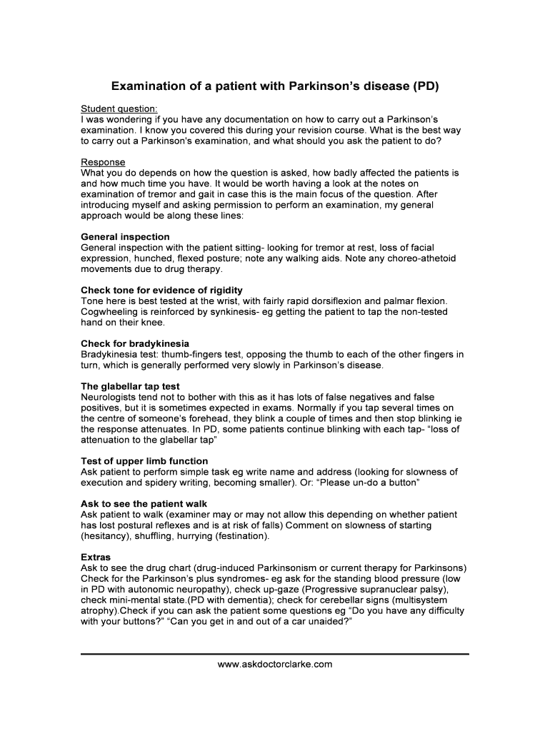 Get the free Examination of a patient with Parkinsons disease (PD)