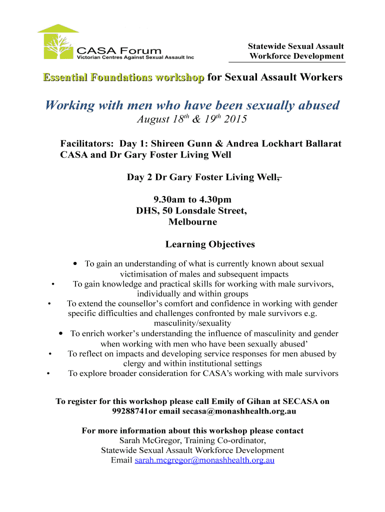 Get the free Working with men who have been sexually abused - bCASAb Forum - casa org