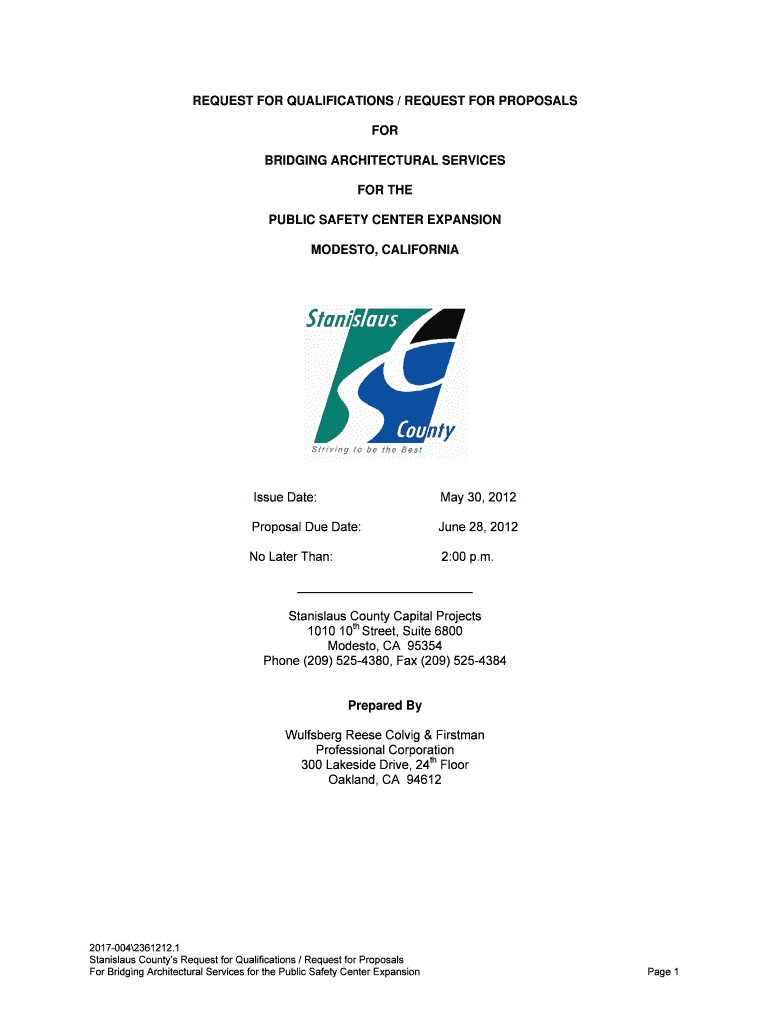This document outlines the request for qualifications and proposals for highly qualified architectural firms to provide bridging architectural services for the expansion of the Public Safety Center
