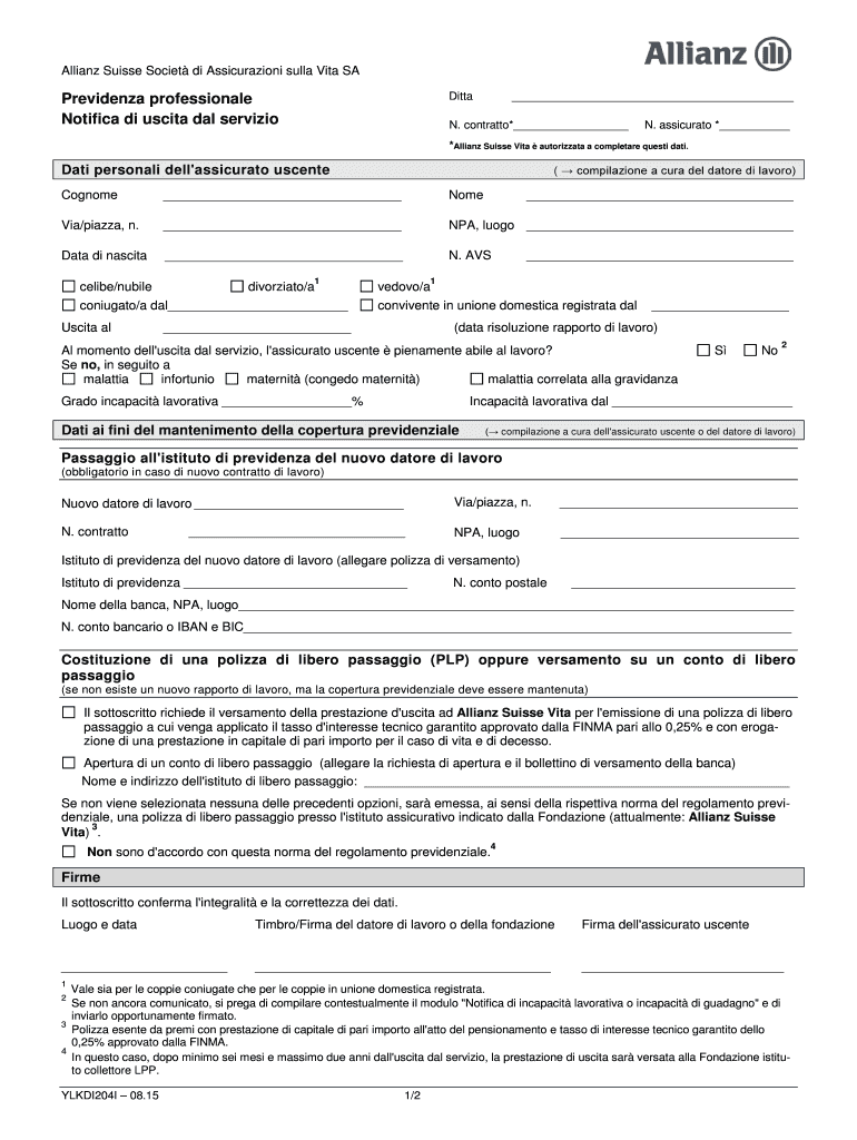 Ottieni il gratuito Notifica di uscita dal servizio - allianz