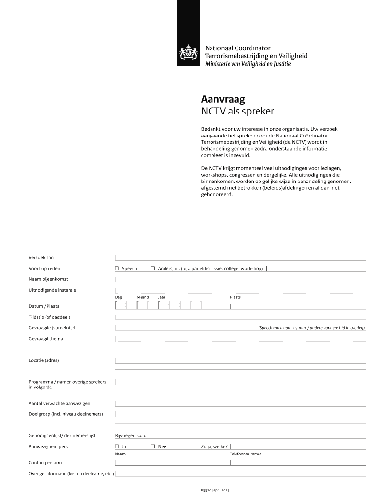 NCTV als spreker kan worden ingediend via een specifiek formulier of online portal.