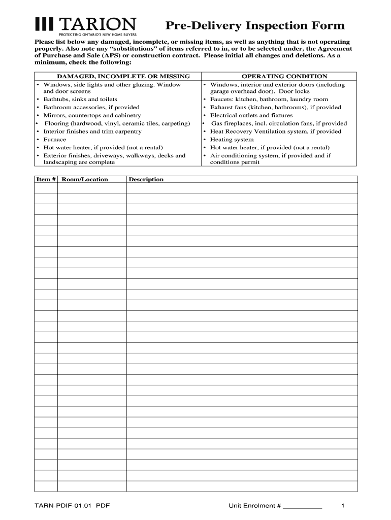 Specifically, the pre-delivery inspection form serves as a builder inspection form and ensures that all necessary components of the home are examined. It provides a clear outline of the home's state at the time of handover, increasing accountability and preventing disputes later on.