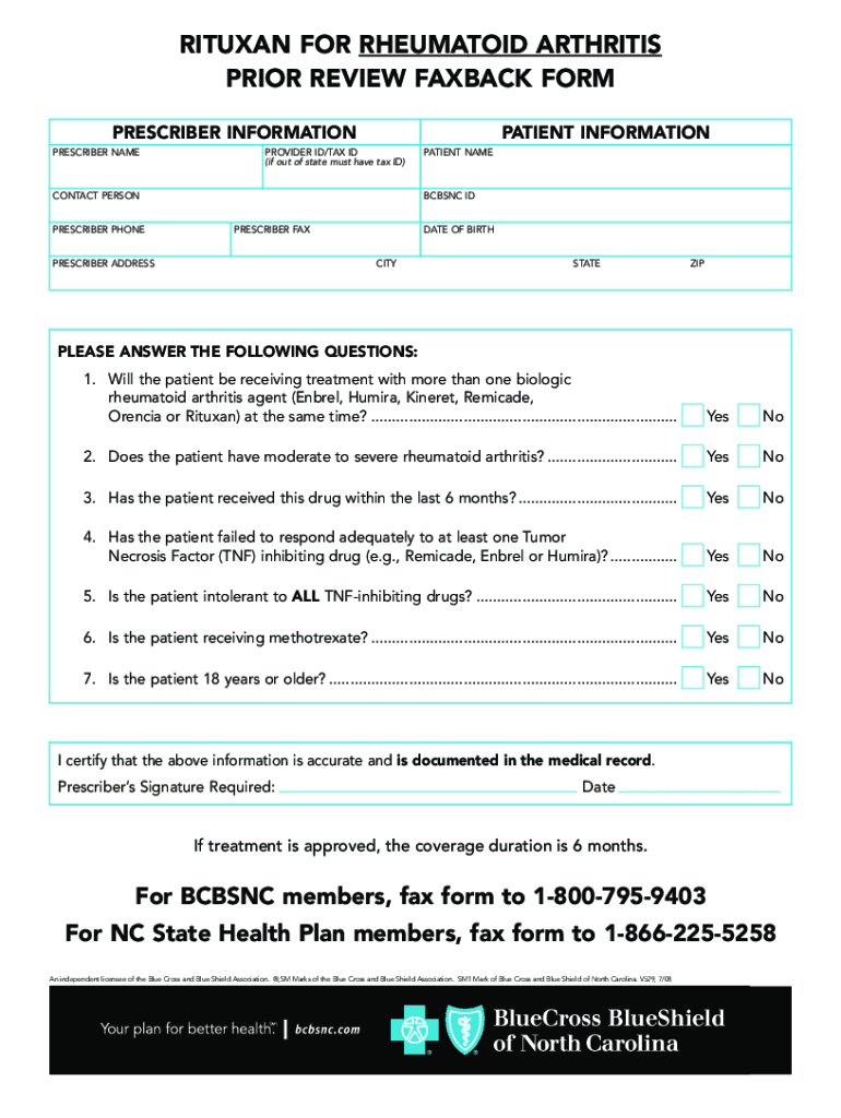 Get the free RITUXAN FOR RHEUMATOID ARTHRITIS PRIOR REVIEW FAXBACK FORM