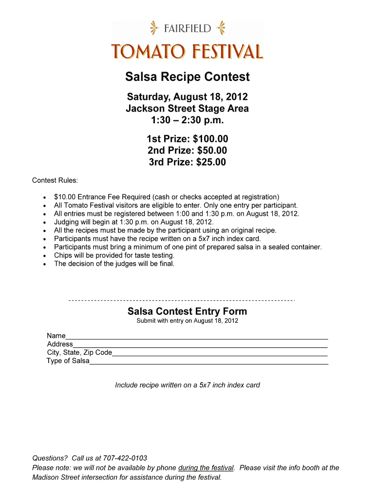 All participants wishing to enter the salsa recipe contest are required to file the Salsa Recipe Contest Entry Form.